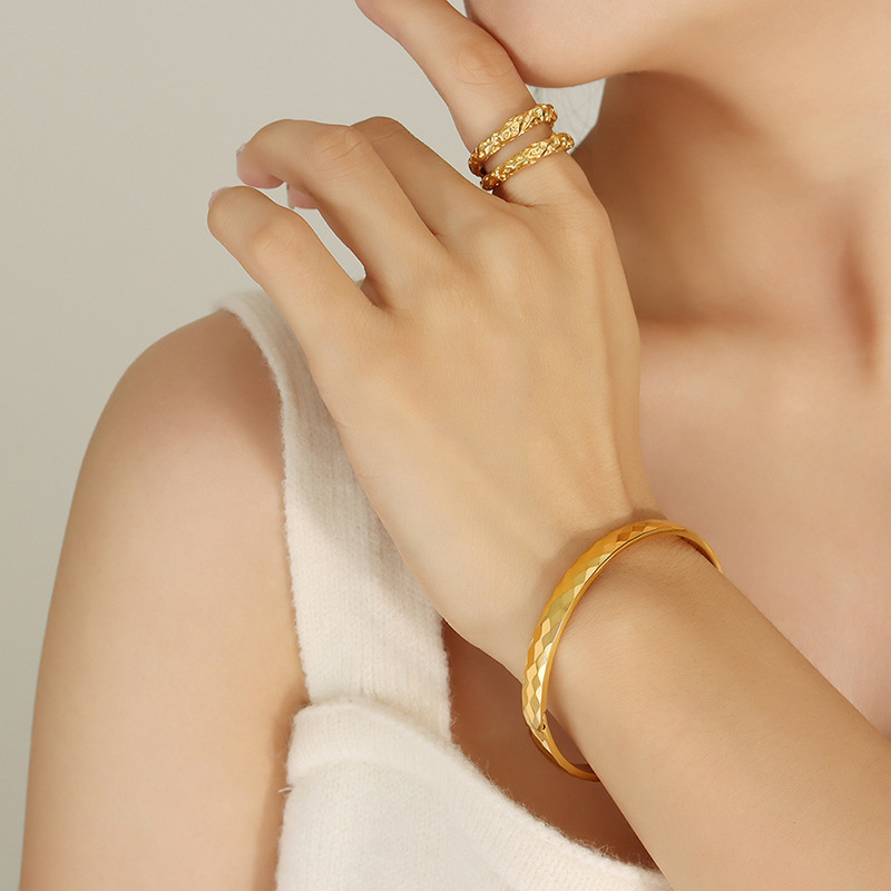 開放18k金素輪チタン鋼ブレスレットネット赤爆金金メッキブレスレット女性は色が落ちない高級感のある手飾りins潮