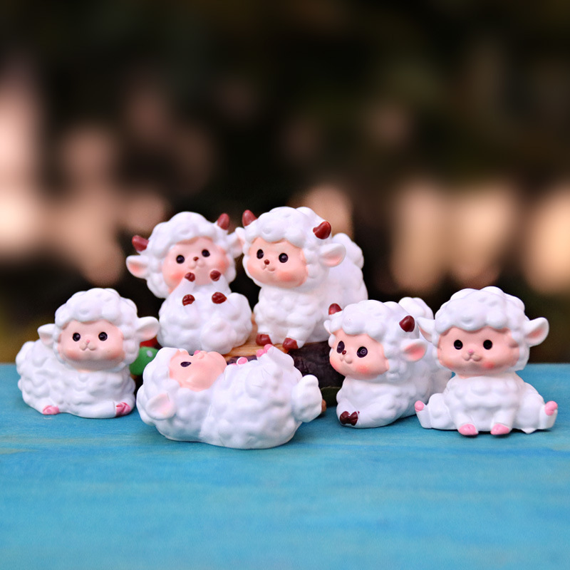 かわいい萌えアニメ樹脂シミュレーション動物小羊公仔人形微景観多肉植物装飾小置物