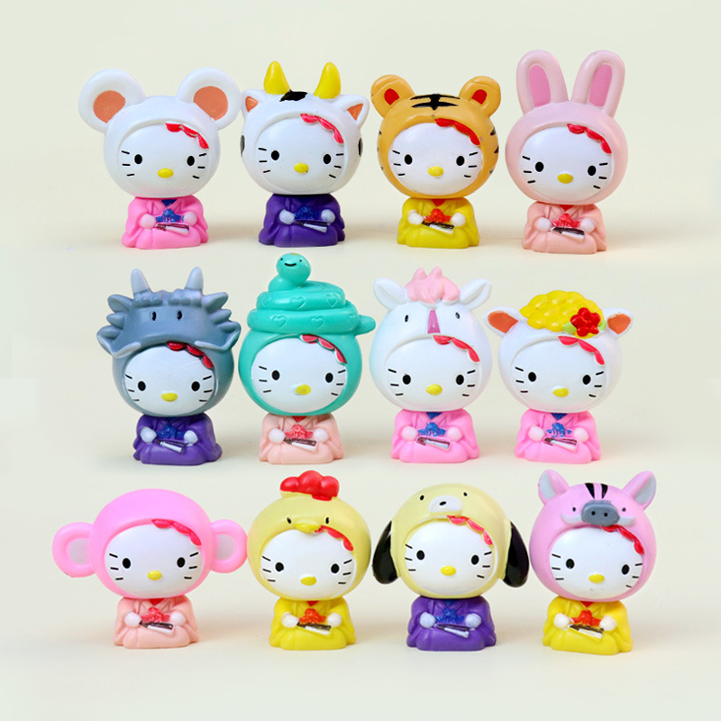 かわいいKT cos十二生肖動物鼠牛虎兎龍蛇手人形デスクトップ車載装飾品置物