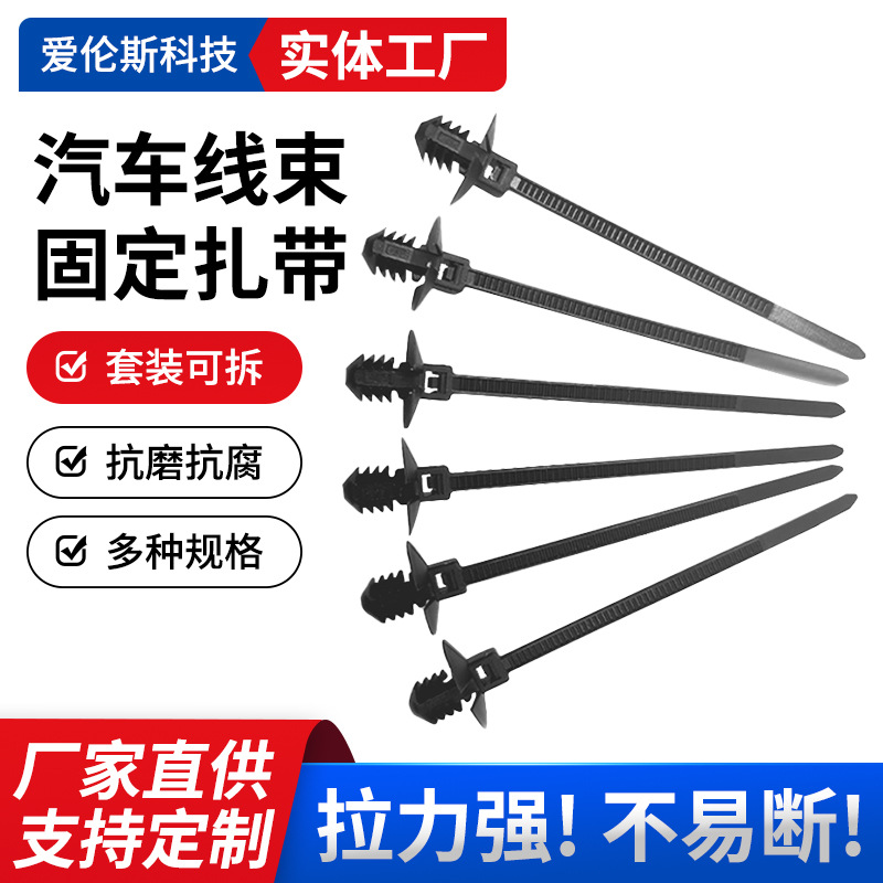 现货2.5X110mm螺纹头杉树型插销式线束捆扎带 汽车线束尼龙扎带