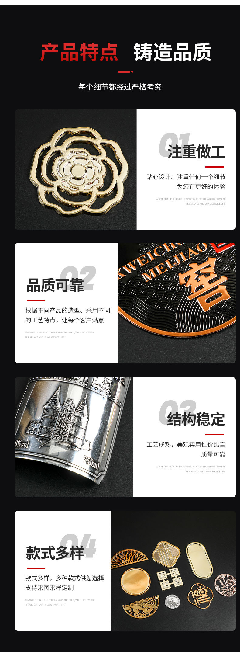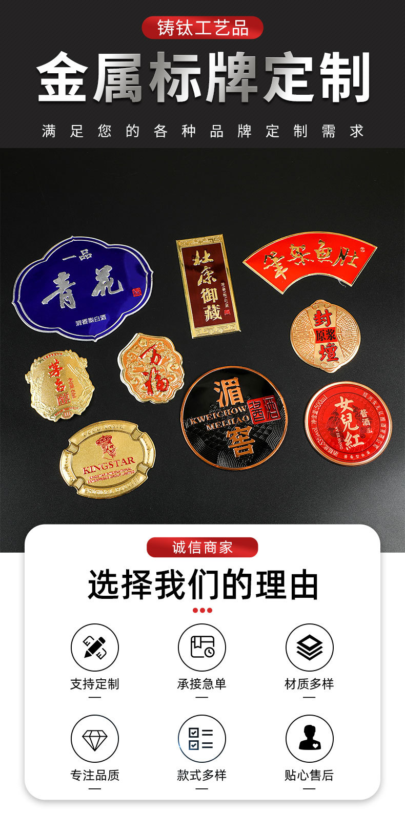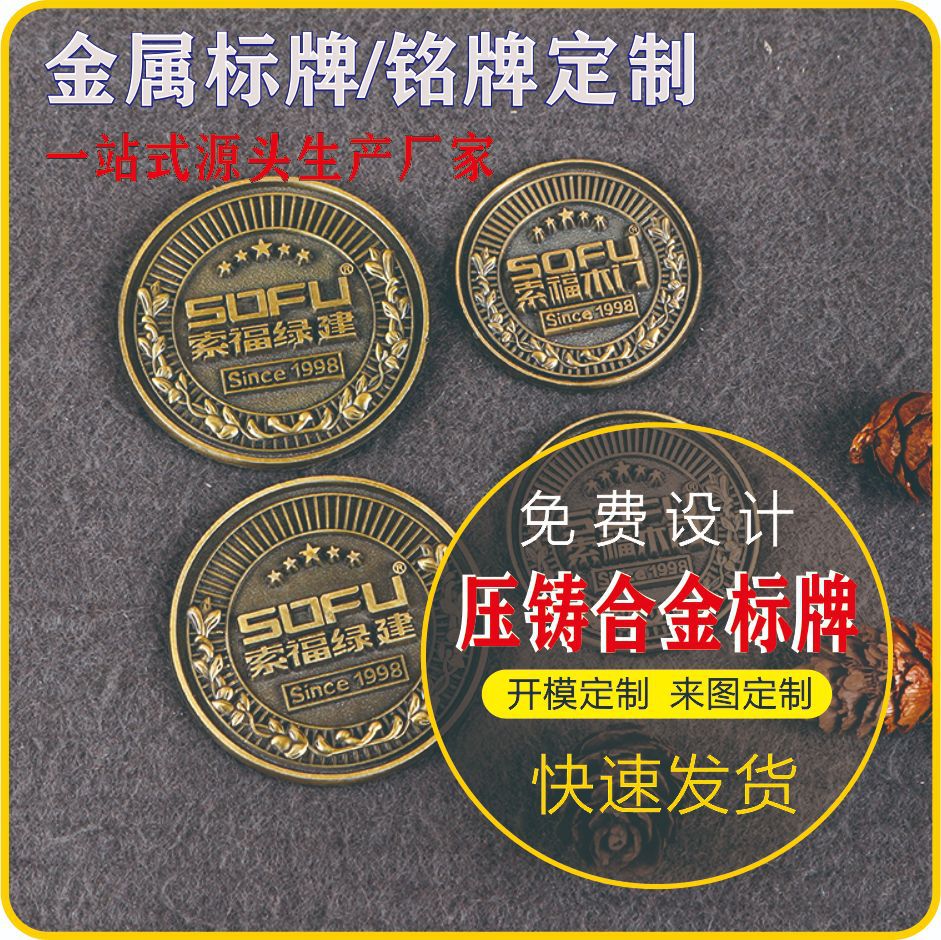亜鉛合金看板、電気メッキ模造銅看板製造、荷物ギフトボックス鉄看板、ロゴ商標銘板製造