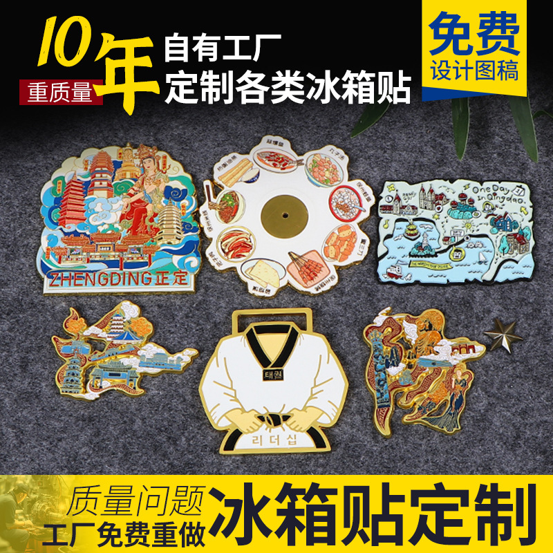 金属冷蔵庫ステッカー、文化的で創造的なダイカスト三次元亜鉛合金電気メッキ金属ラベル、カラー UV 印刷凹凸エンボスラベル