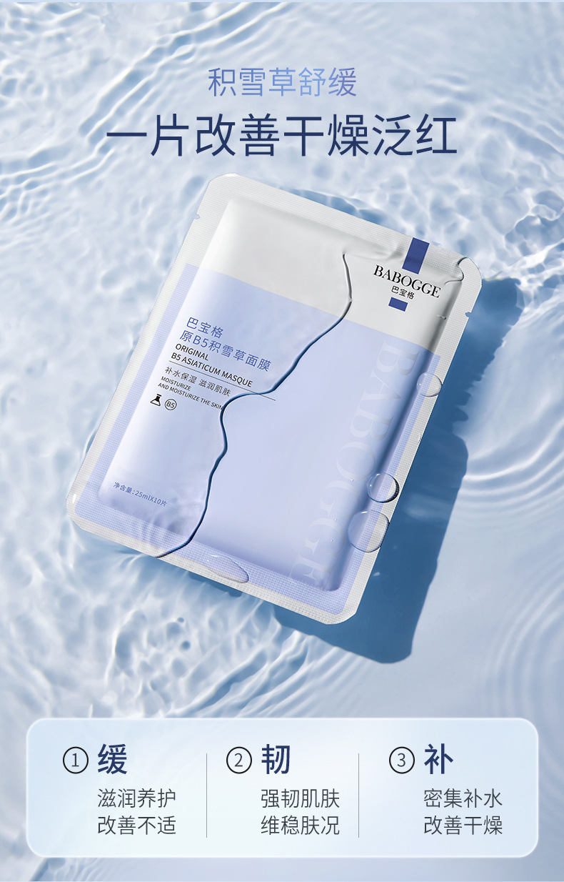巴宝格原b 5積雪草マスクは水を補って保湿します。