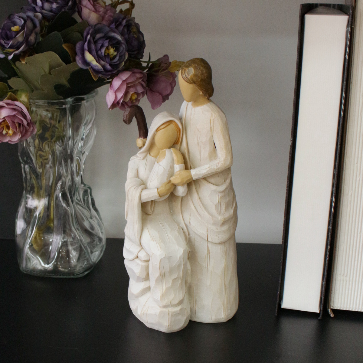 越境新品レトロ創意宗教一家は木彫りのデスクトップの家庭装飾品樹脂工芸品の置物をまねています。