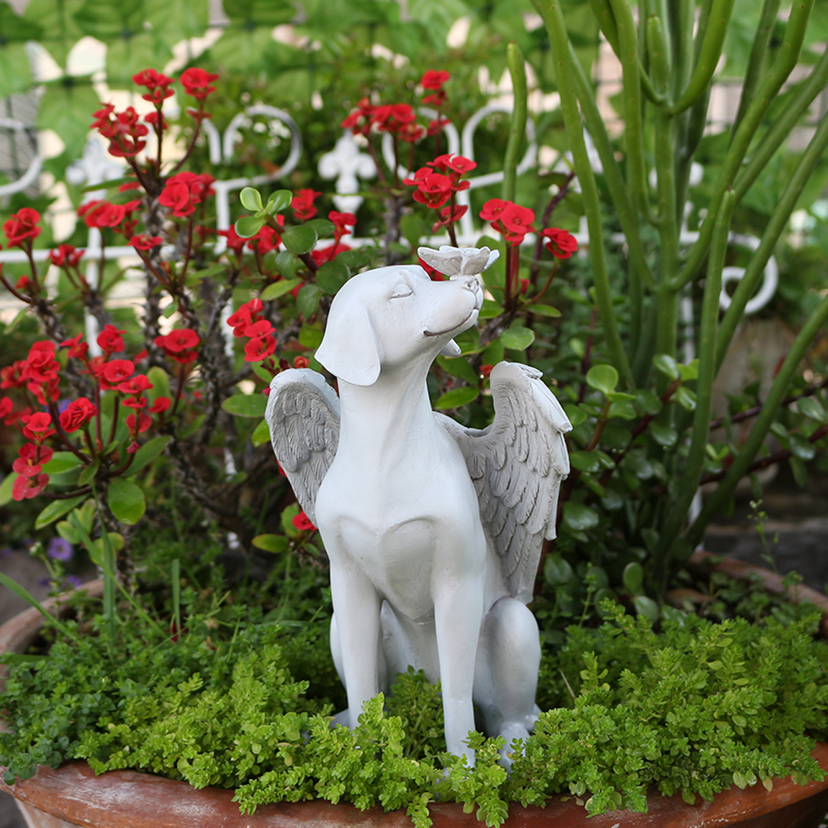 越境新品創意天使犬樹脂置物ペット記念品天使の翼樹脂工芸品置物
