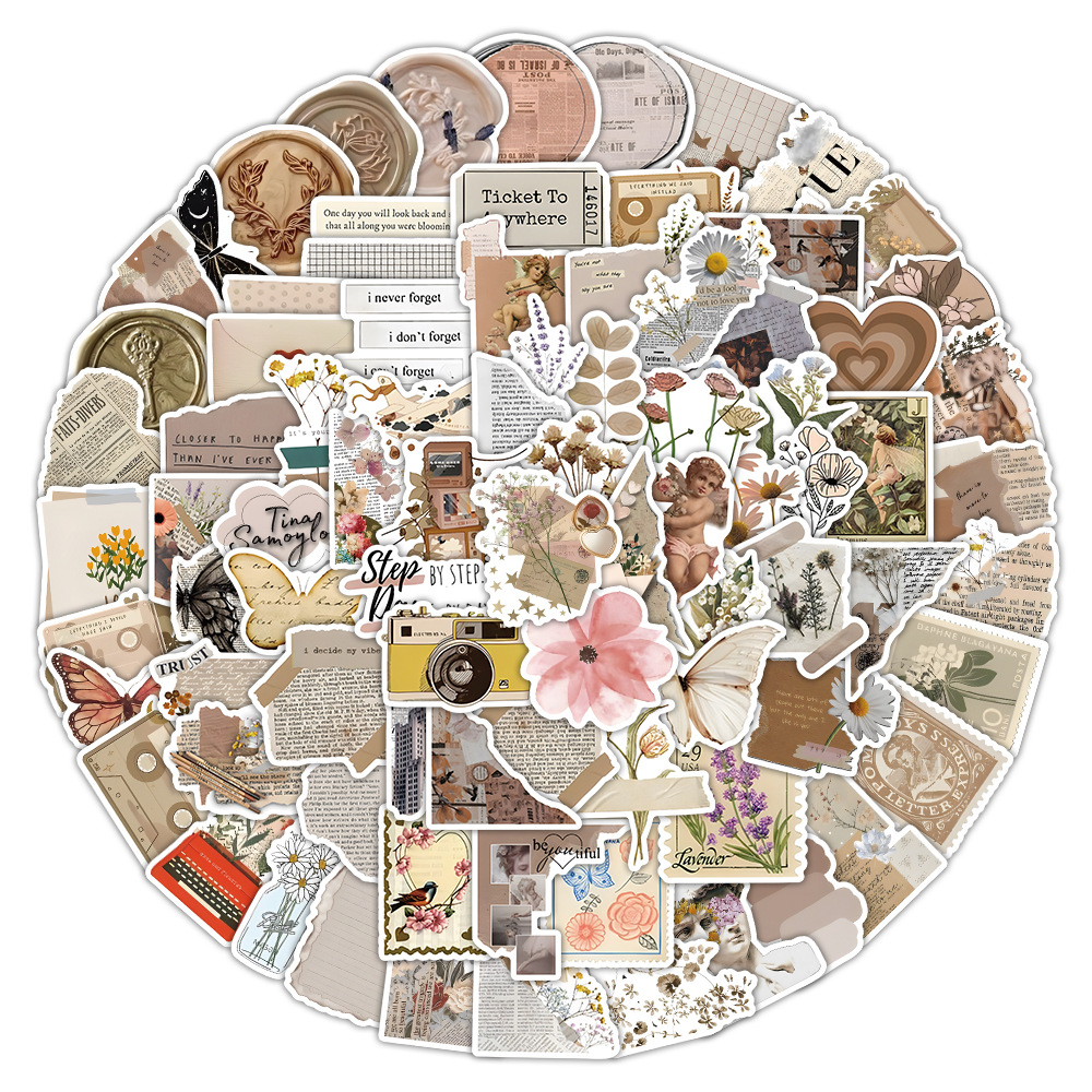 120张怀旧复古英伦残缺报纸日记贴纸笔记本汽车吉他行李箱贴批发