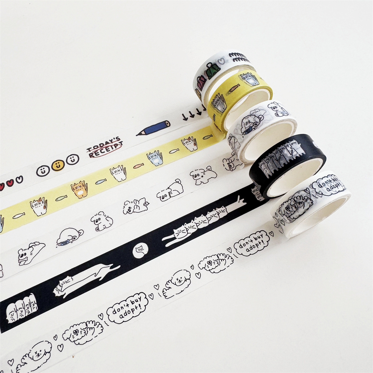 【5米】 韩国ins和纸胶带简笔画小狗卡通猫咪手账素材贴纸胶带