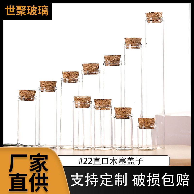 22mm直口木塞盖管制瓶透明虫草瓶直径玻璃瓶试管小药瓶漂流瓶现货