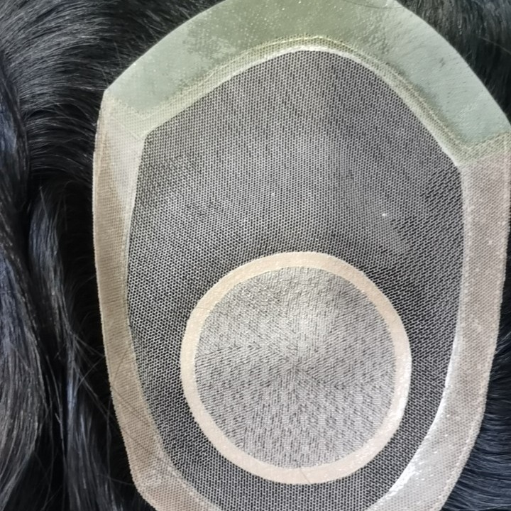 男性用かつら、部分かつら、染毛シート、人毛ブロック、本物の髪、ハゲ隠し、完全手編み、バイオスキンカバー