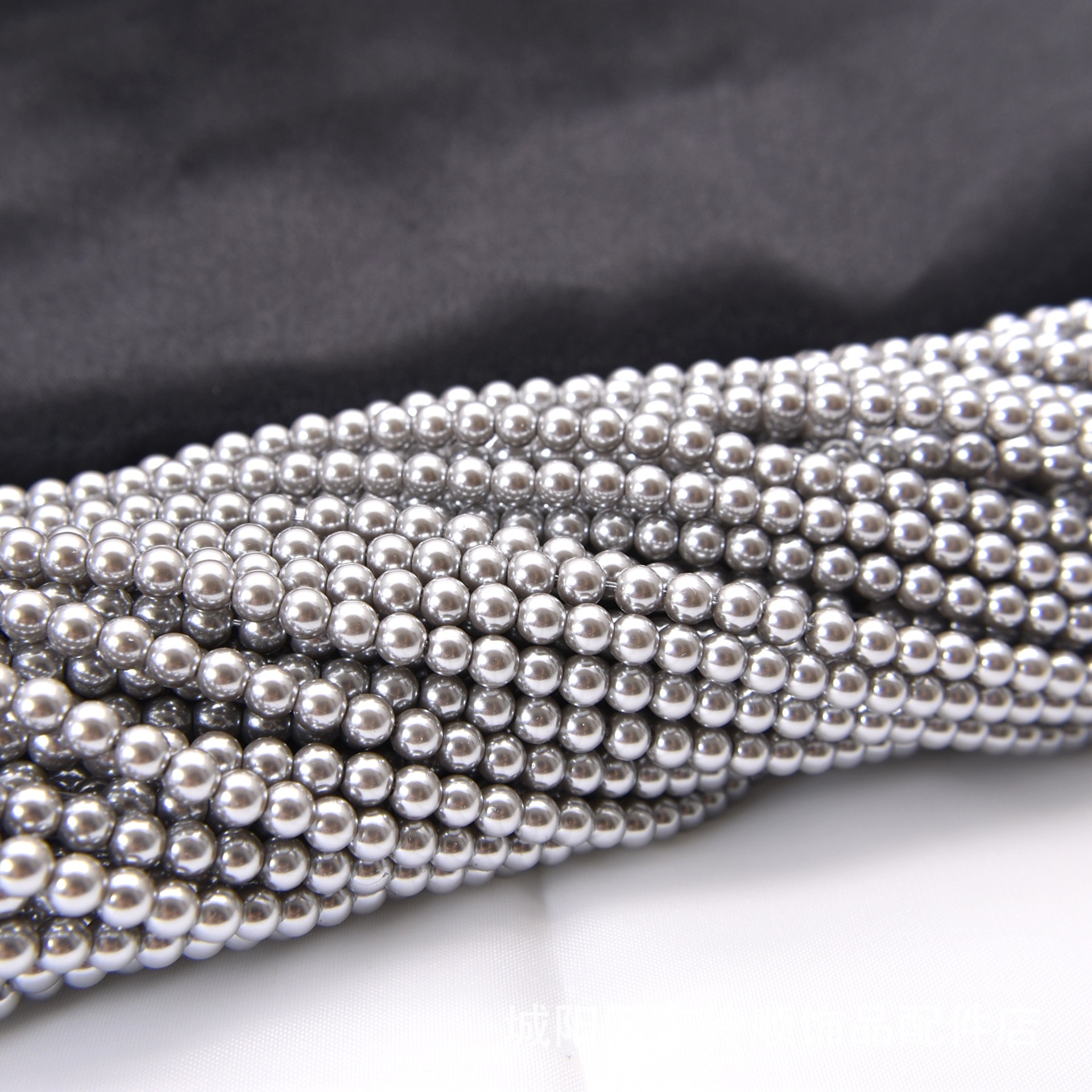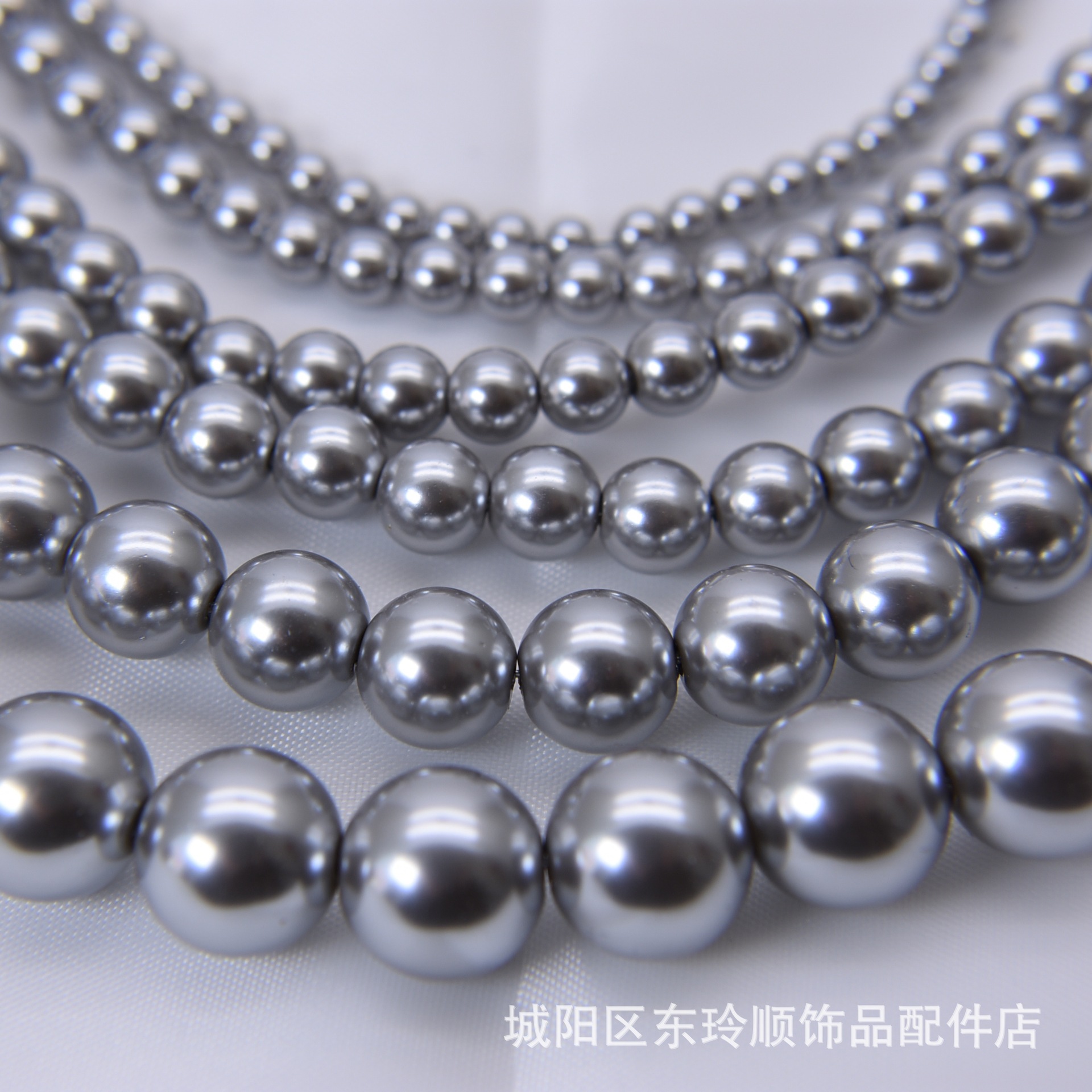 真多麻灰色真円ハイライトガラス模造真珠散珠手作りdiyビーズ材料アクセサリー材料