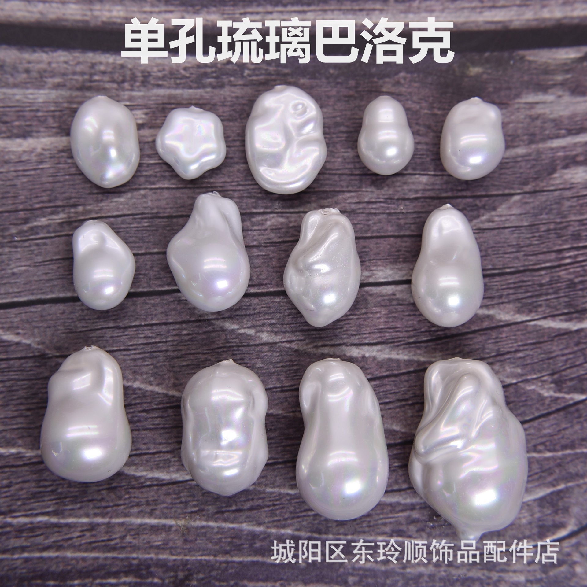 仿贝壳珠半孔巴洛克异形玻璃仿珍珠 散珠裸珠diy耳环项链配件批发