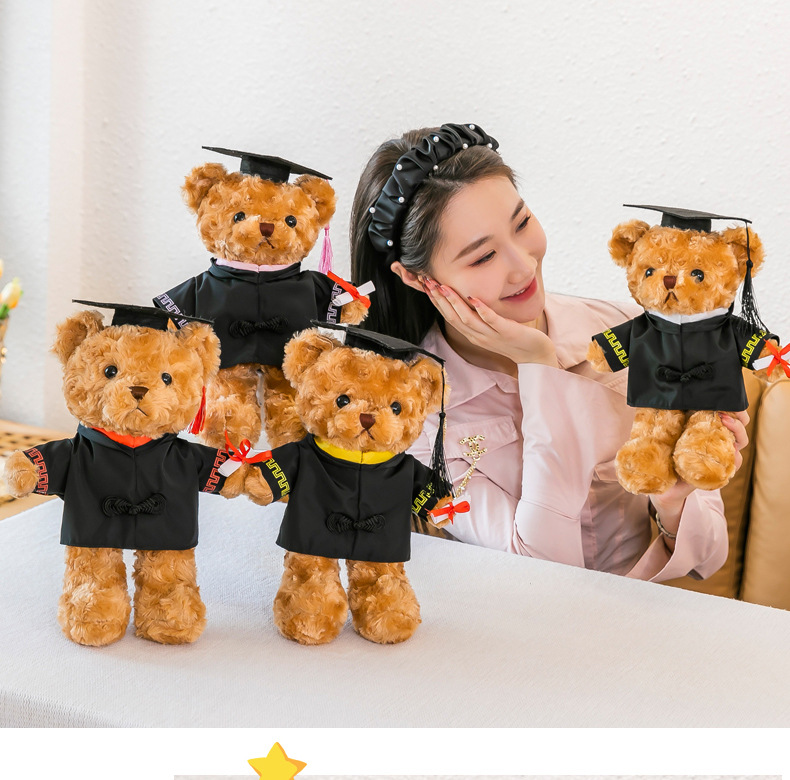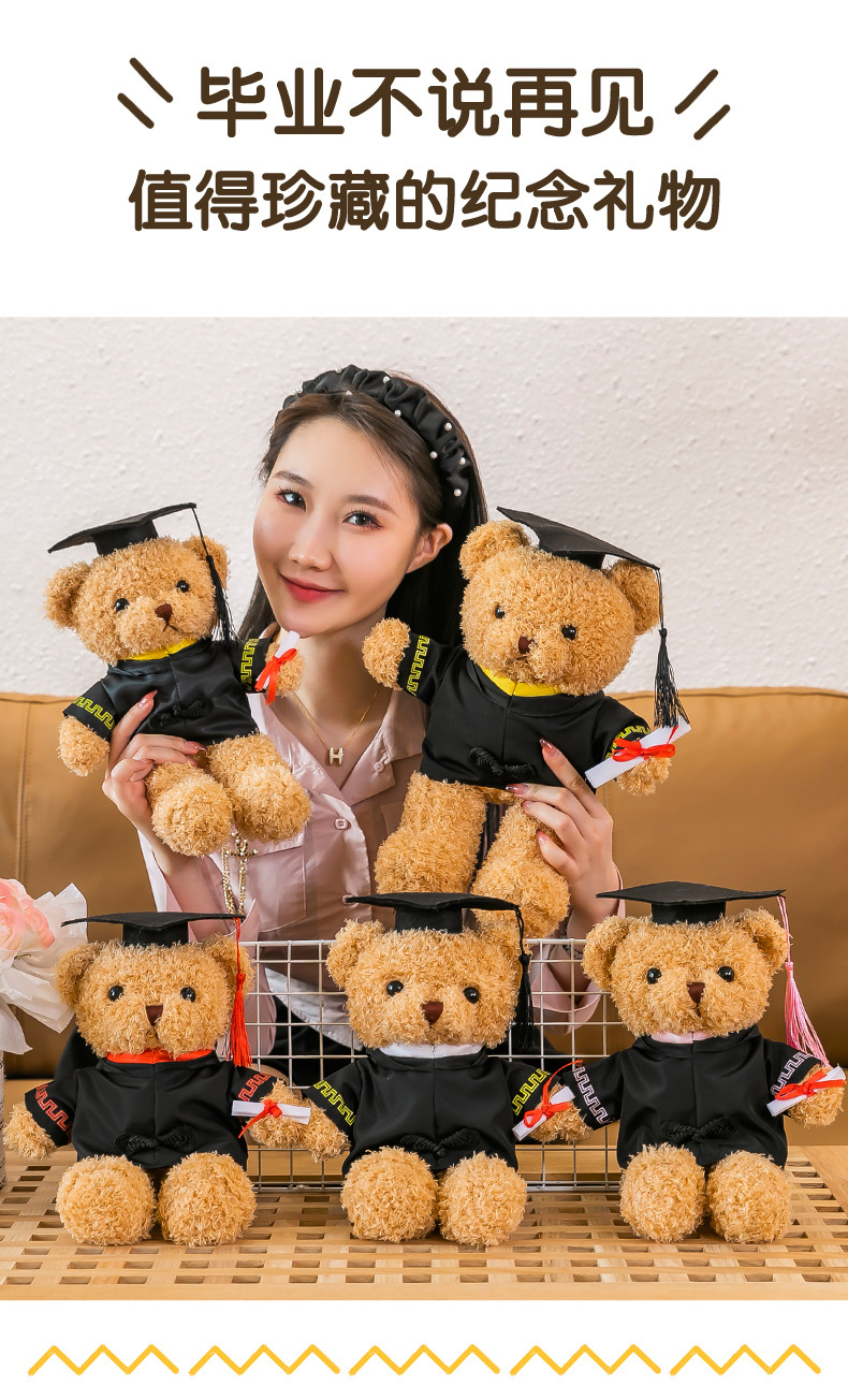 博士帽をかぶった熊公仔博士熊ぬいぐるみテディベア卒業熊人形卒業シーズンプレゼントロゴ
