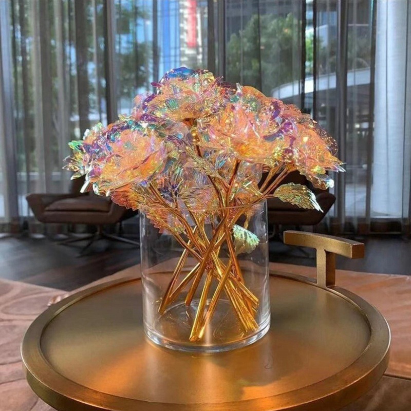 跨境绚彩金箔花创意教师节永生花伴手礼仿真玫瑰花场景布置道