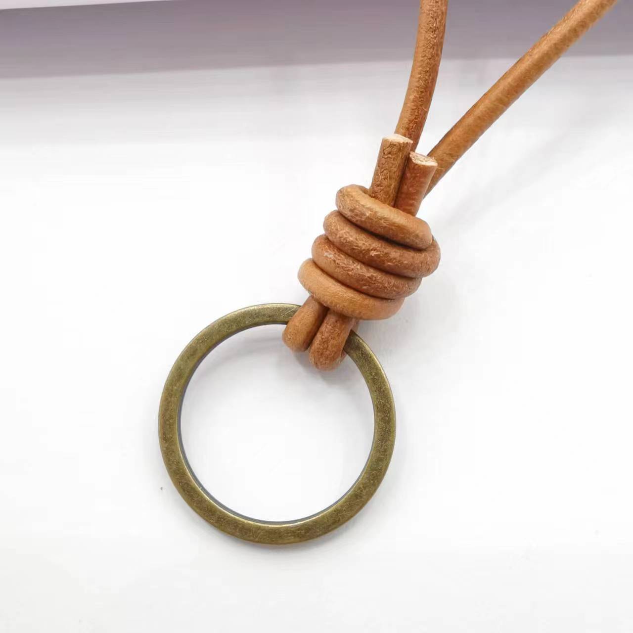 レトロな革紐のキーホルダーには、オープンスプリングリングの牛革ひもの車のキーホルダーのアイデアdiyストラップが飾られています。