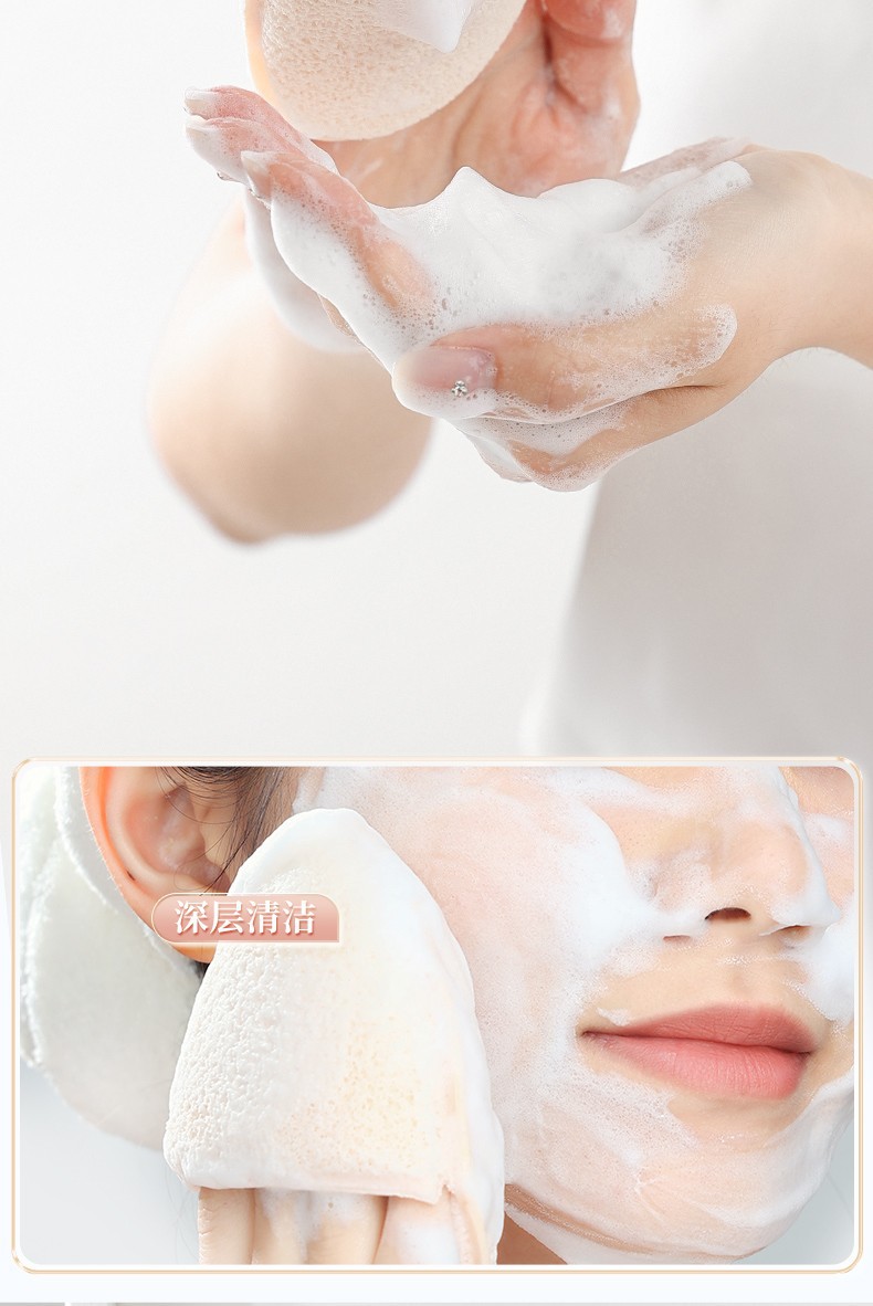 厚手の洗顔スポンジの洗顔料を厚くして、顔をきれいにします。