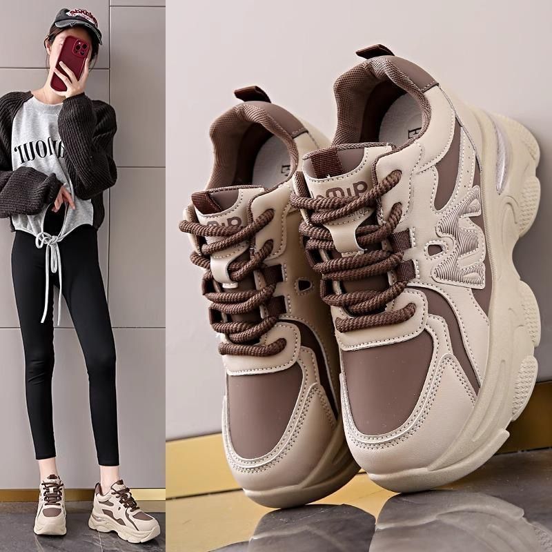 2025年秋 香港風ファッション 簡単コーデ 白スニーカー 学生 厚底 カジュアル スポーツシューズ ローヒール