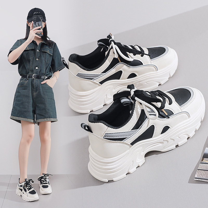 春の女性の靴新しい通気性の白い靴韓国スタイルトレンディな多用途厚底スポーツカジュアルお父さん靴女性 Q8825