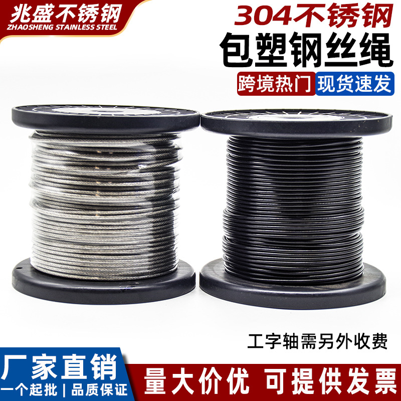 黒色被覆ワイヤーロープ304ステンレス鋼ワイヤーロープ塗装ワイヤーロープ1mm2mm3mm4mm5mm6mm