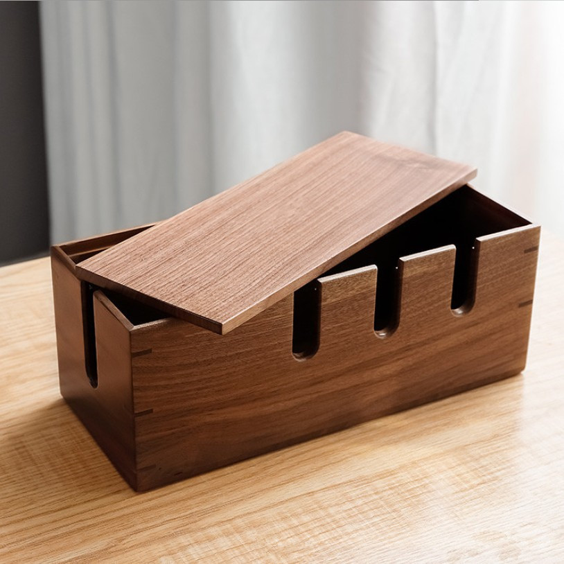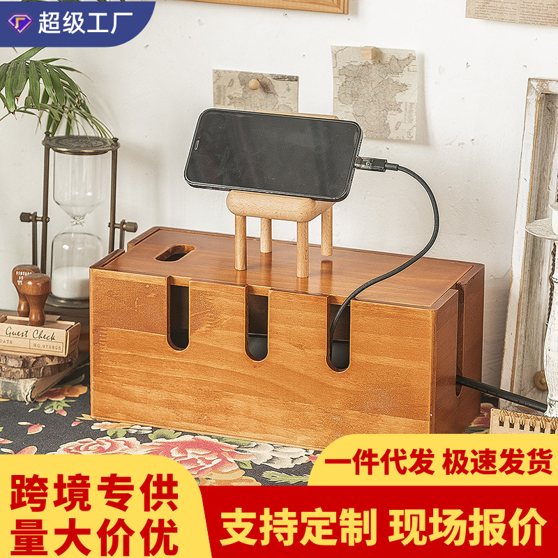 無垢材ケーブル管理ボックスハブデスクトップデータケーブルストリップ電源コード収納ボックスルーター配置ラック