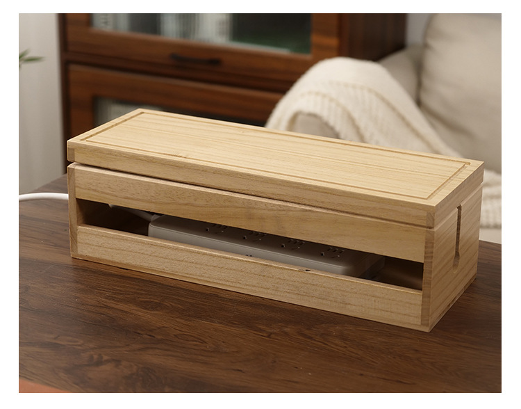 家庭用木製リビングキッチン収納シンプル配線ボックス無垢材プラグボード電線収納整理ボックス
