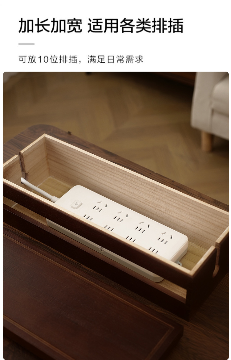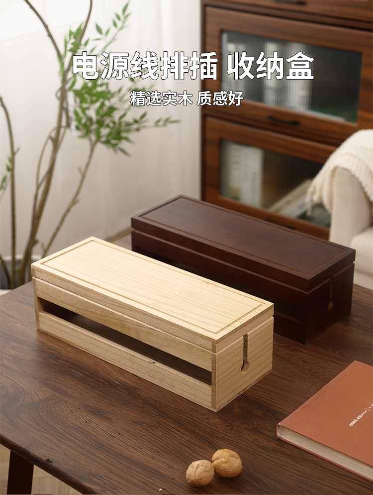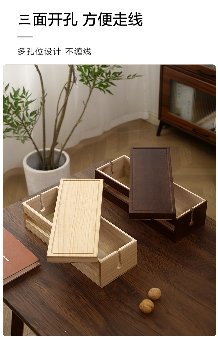 木制桌面电源线收纳盒插线板整理家用实木集线盒插排数据线收纳盒