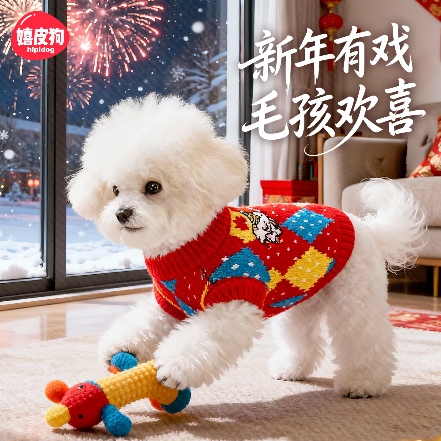 嬉皮狗新年宠物衣服喜庆过年毛衣中小型犬加厚保暖比熊猫咪狗服饰
