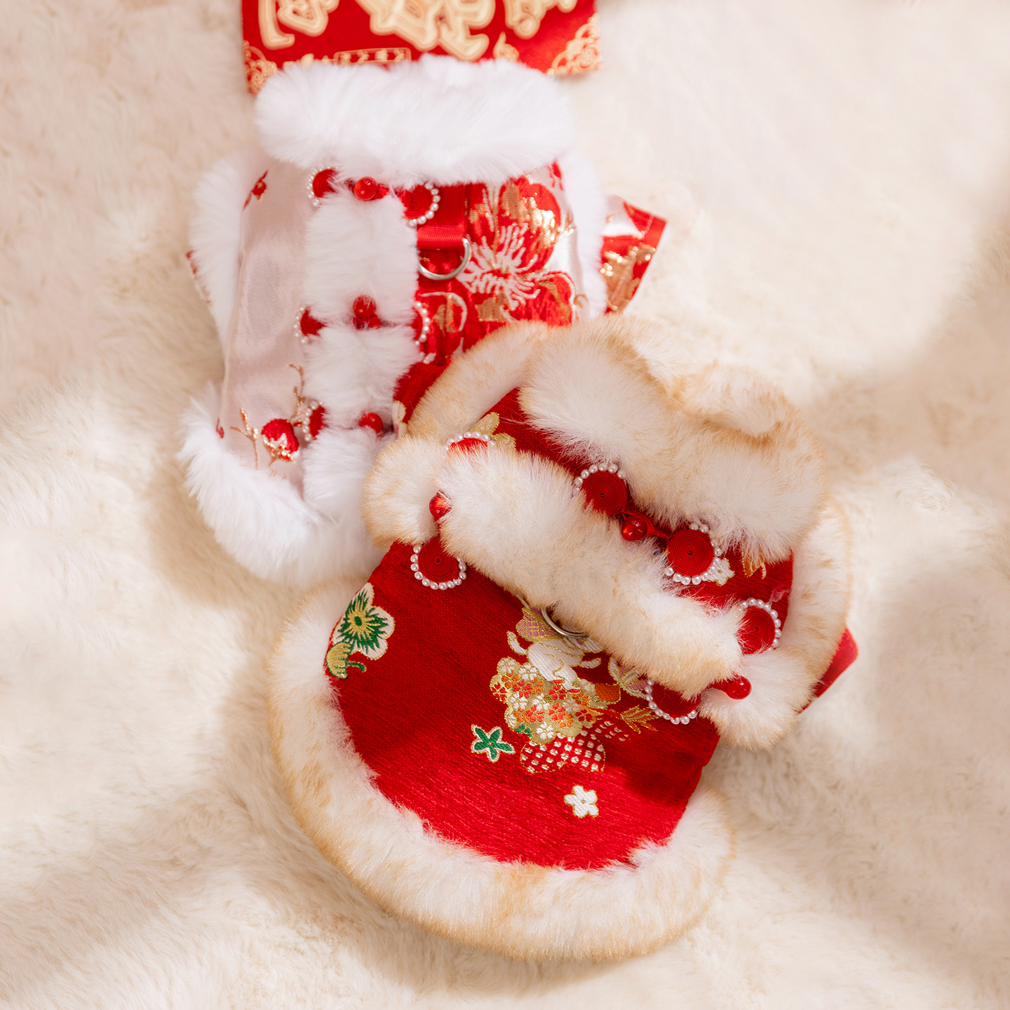 秋冬の犬の新年の服の中国式の小型犬の正月の服のお祝いの猫の綿の服の馬甲のペットの唐服
