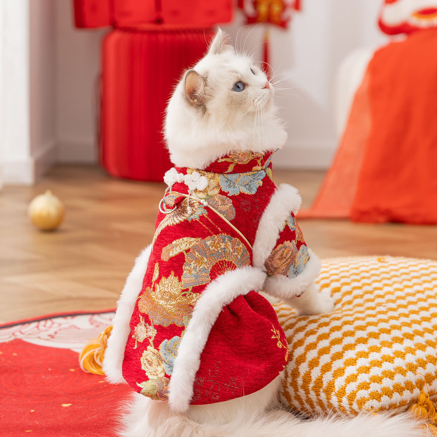 国风新中式猫咪唐装喜庆过年雪尼尔棉衣裙成幼猫秋冬保暖宠物衣服
