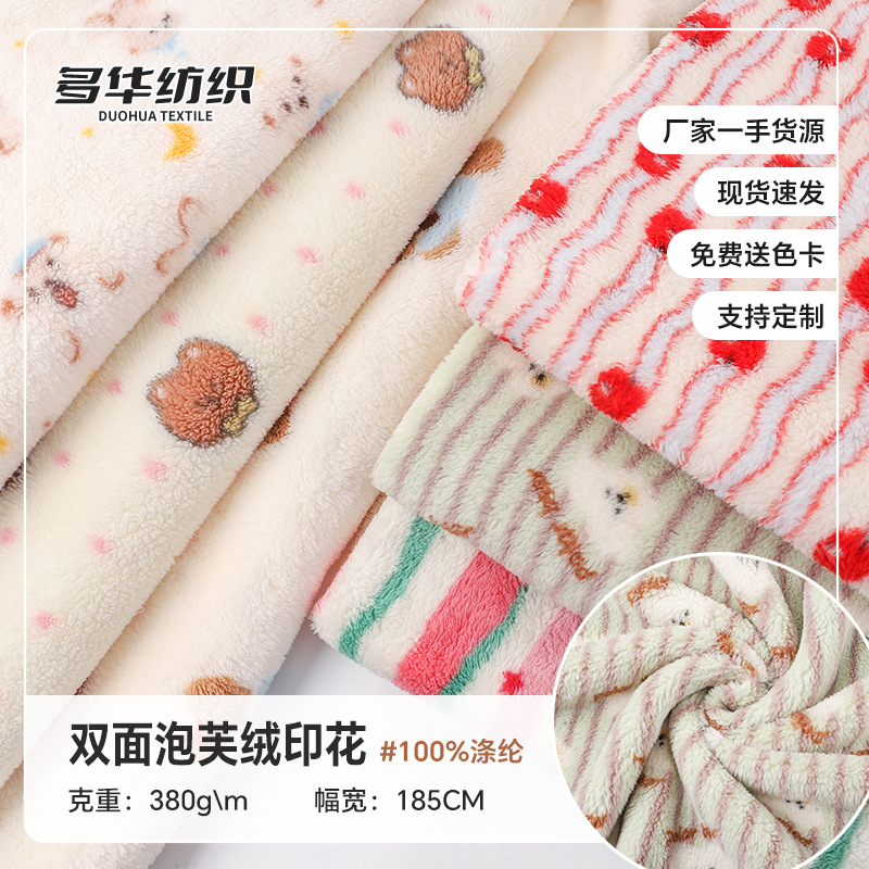 双面泡芙绒印花绒布380g加厚卡通印花家居服双面舒棉绒毛绒布料