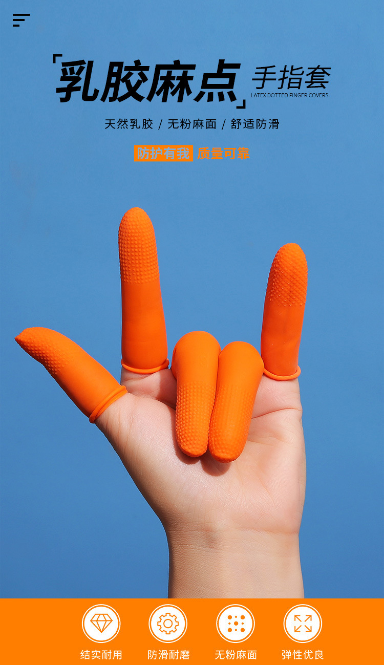 点钞分翻页印刷橙色麻点橡胶防滑手指套加厚乳胶防护防污耐磨指套