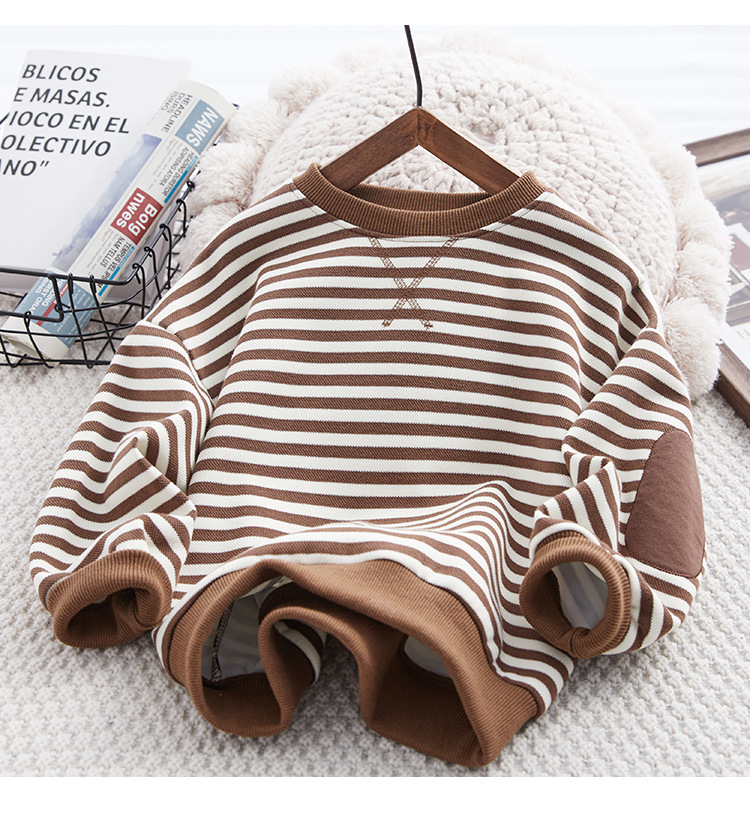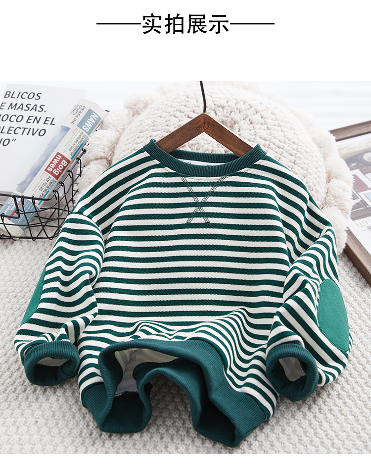童装春秋装男孩女童卫衣新款儿童打底衫韩版宝宝条纹上衣加绒洋气