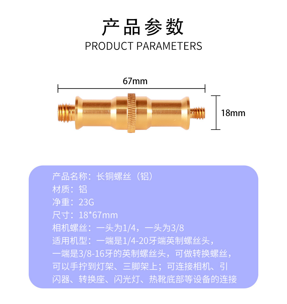 一眼レフカメラ1/4金属中継ねじB/E型フラッシュソケット速装板相互回転内外ねじセット