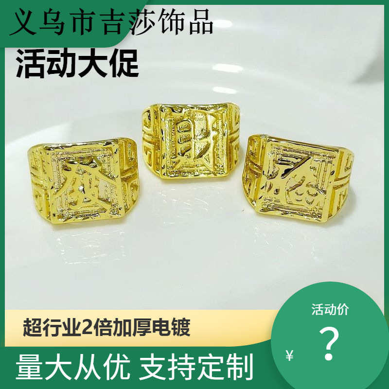 越南沙金精工款男戒加厚金发福财大戒指首饰电商直播货源代发批发