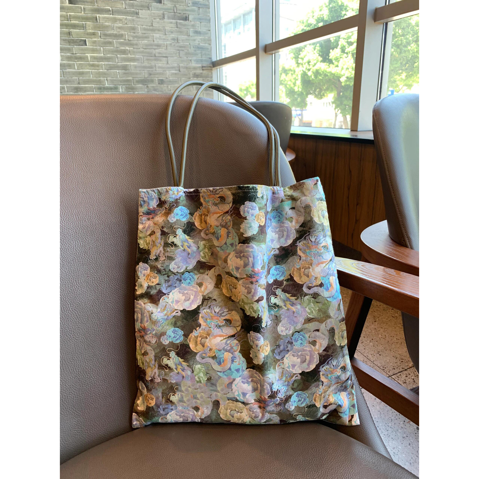 レトロ新中国式龍吟の花キャンバスバッグ高級国風シングル肩脇下バッグ大容量トートショッピングバッグ