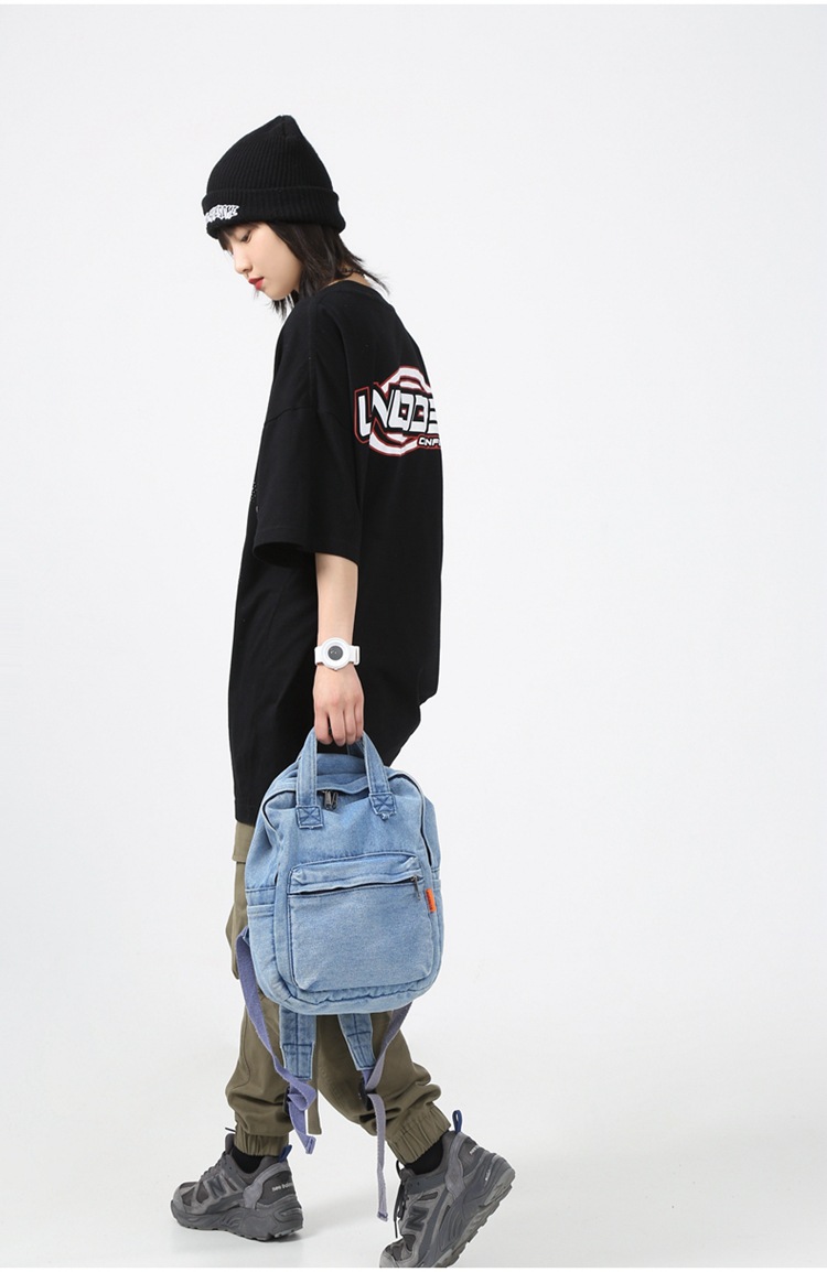 2024韓国版レトロな水洗いデニムバッグ愛は古いプリントのショルダーバッグのプリントデニムのショッピングバッグを作ります。