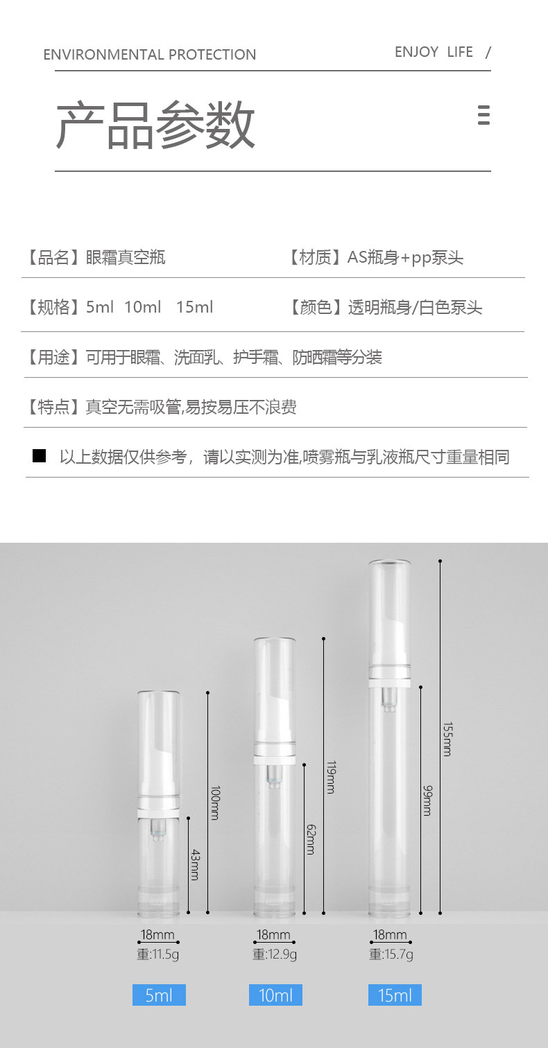 5ml10ml15ml 透明アイクリーム真空ボトルポータブルプレス旅行詰め替えボトルサンプルボトルメーカー供給