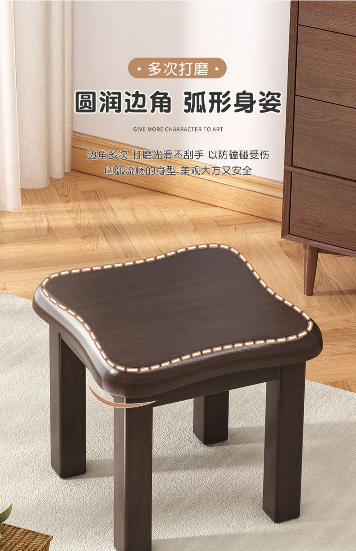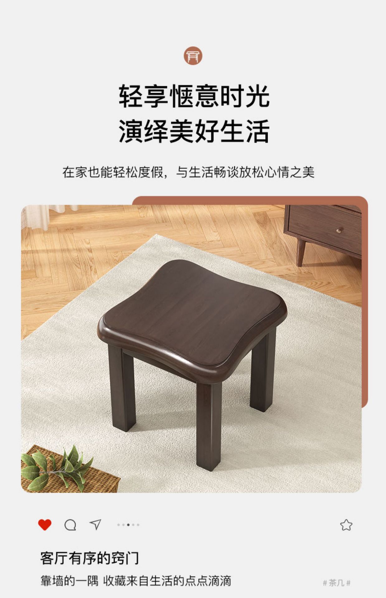 木製折りたたみスツール北欧リビングルーム低いスツールダイニングチェア家庭用モダンシンプル胡胡桃色家具ラウンドスツール