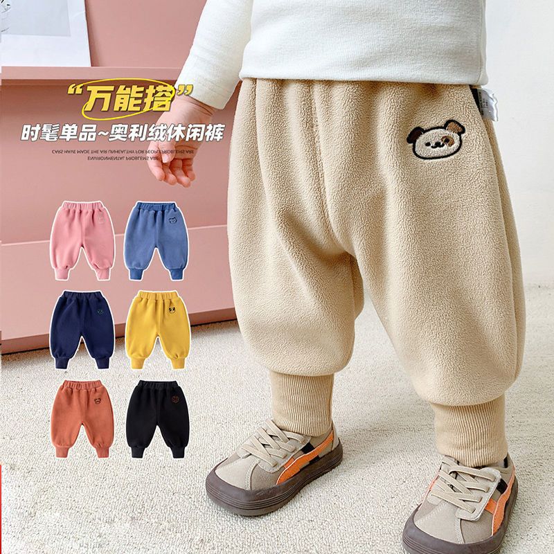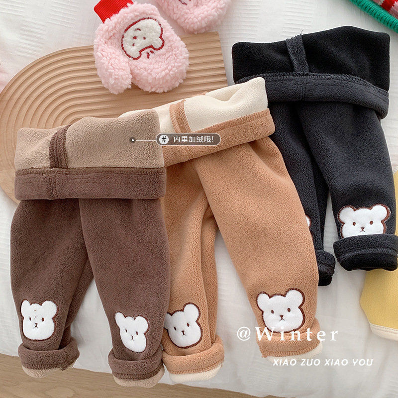 儿童加绒打底裤 0-5岁冬季男女宝宝洋气小熊保暖长裤小童外穿裤子