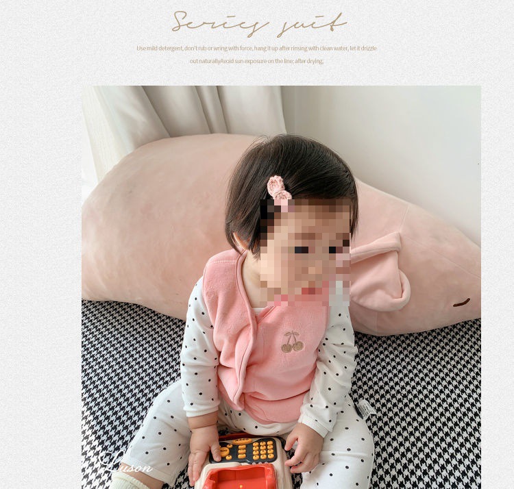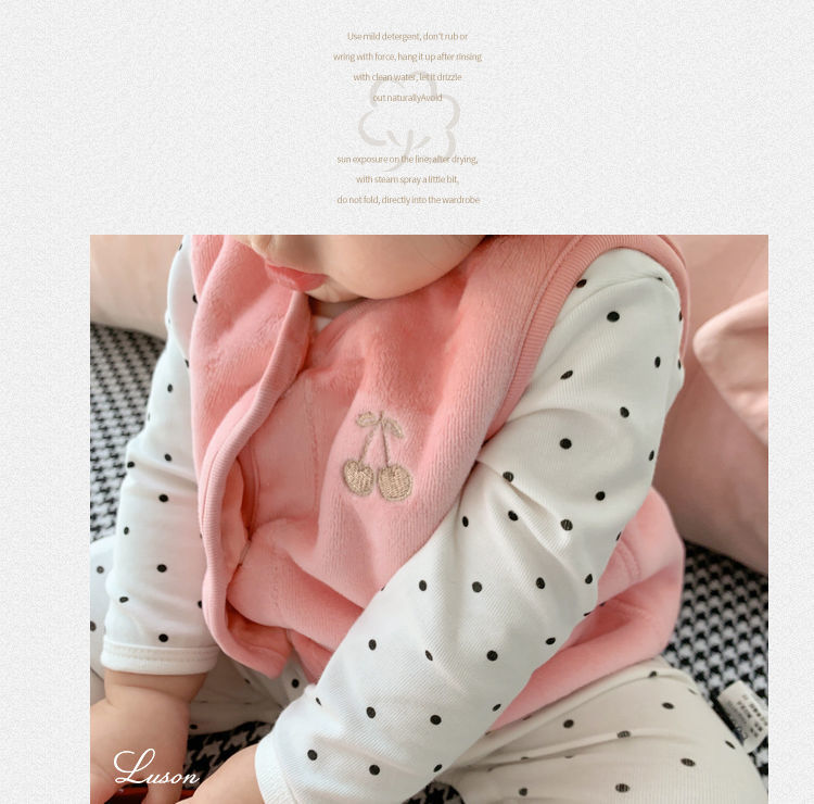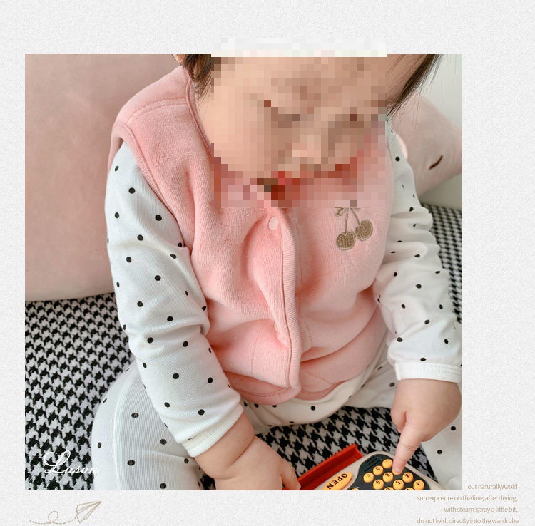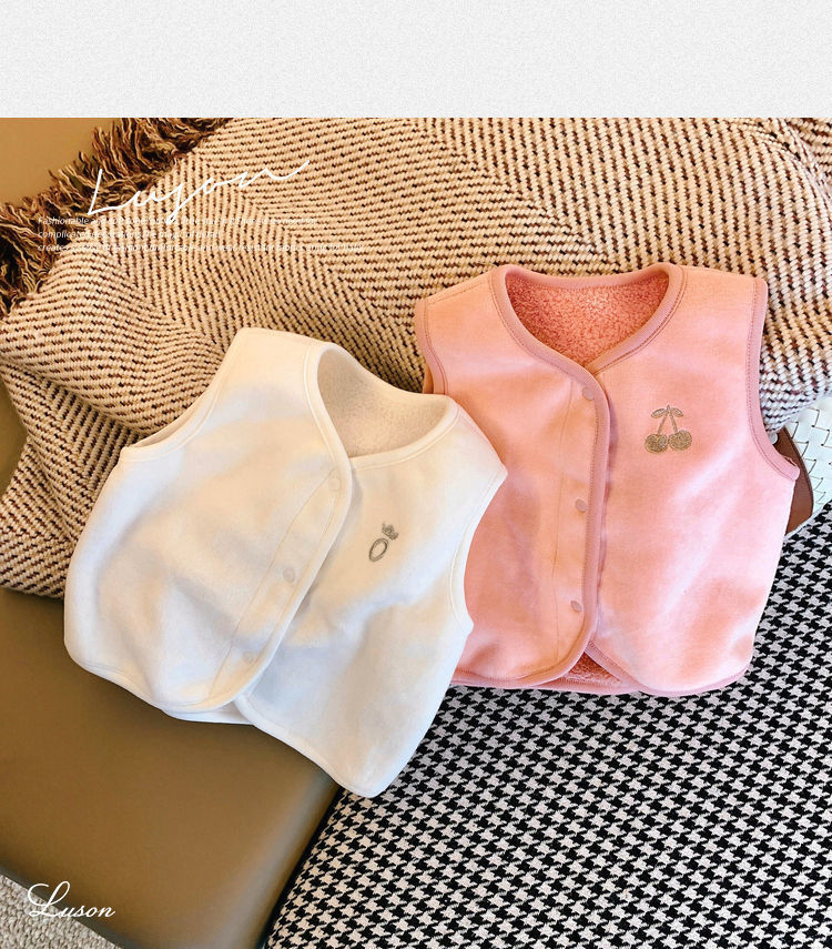 ベビー秋冬服ベルベット小さくらんぼ刺繍馬甲冬男女赤ちゃん新生児羊小パイル保温ベスト