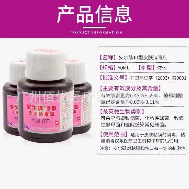 上海利康 安尔碘III型消毒液60ml不含酒精外伤皮肤消毒液婴儿可用
