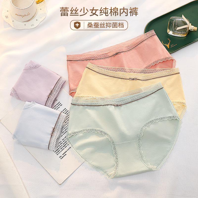 レースの辺の中で腰の純綿の下着の女性の绢糸の抗菌の底の股の日本の少女の女子学生の綿の三角のズボンの卸売り