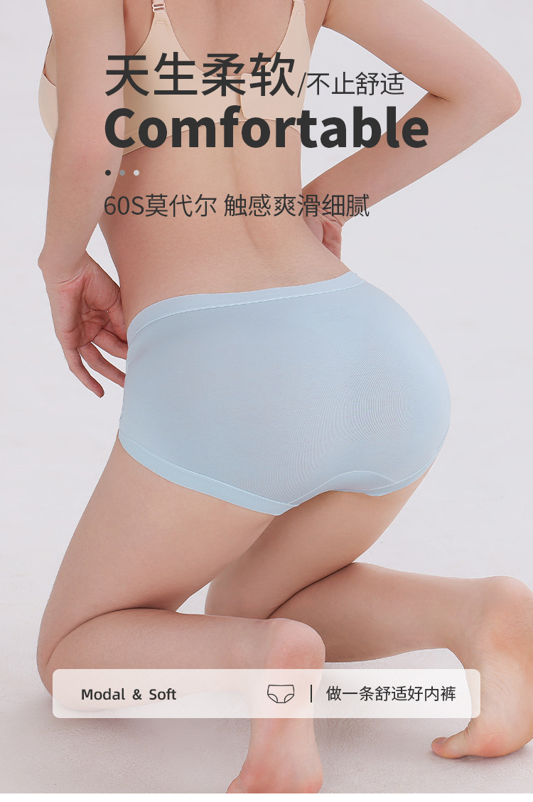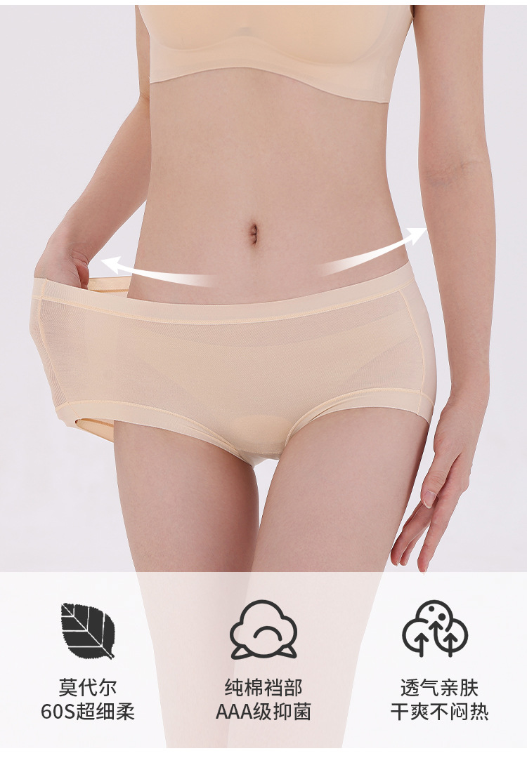 ブランドと同じスタイルの60Sモーダル下着、女の子用ミッドウエストシームレスグラフェン抗菌女性用三角ショーツ卸売