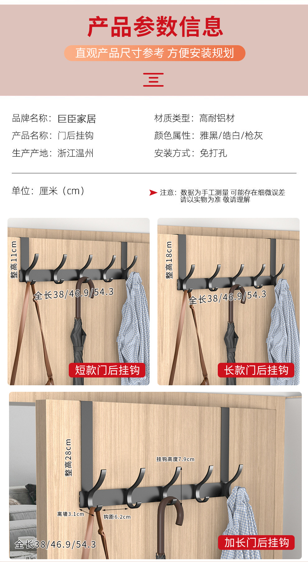 免组装门后挂钩入户玄关免打孔强力挂钩挂衣钩墙上衣帽钩浴室收纳