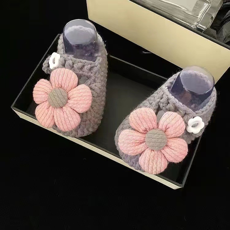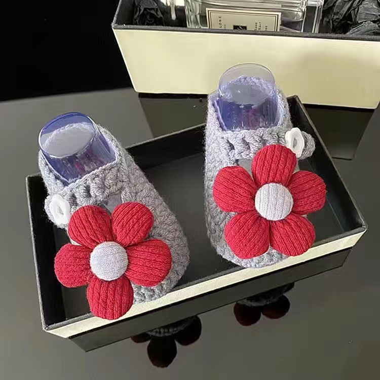 赤ちゃんの手作り毛糸靴花メリヤス前靴