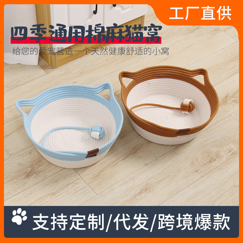 クロスボーダー猫の巣綿麻四季通用綿紐手作り編み夏猫おもちゃボール猫の巣夏ペットマット