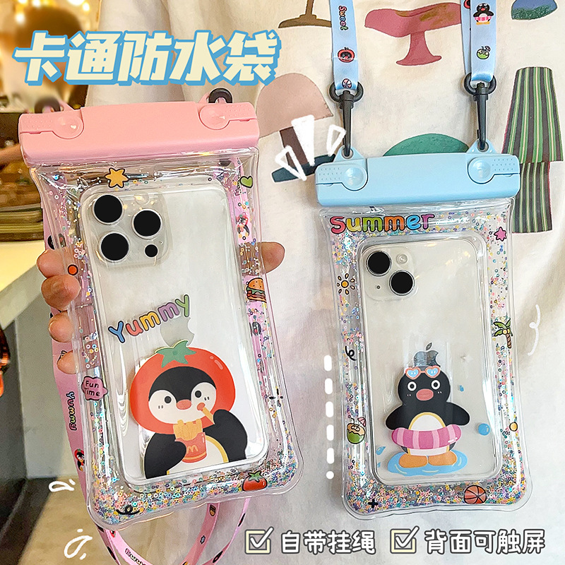 新型エアバッグ流砂防水携帯電話バッグアニメかわいい携帯電話防水袋潜水密封タッチスクリーン携帯カバー