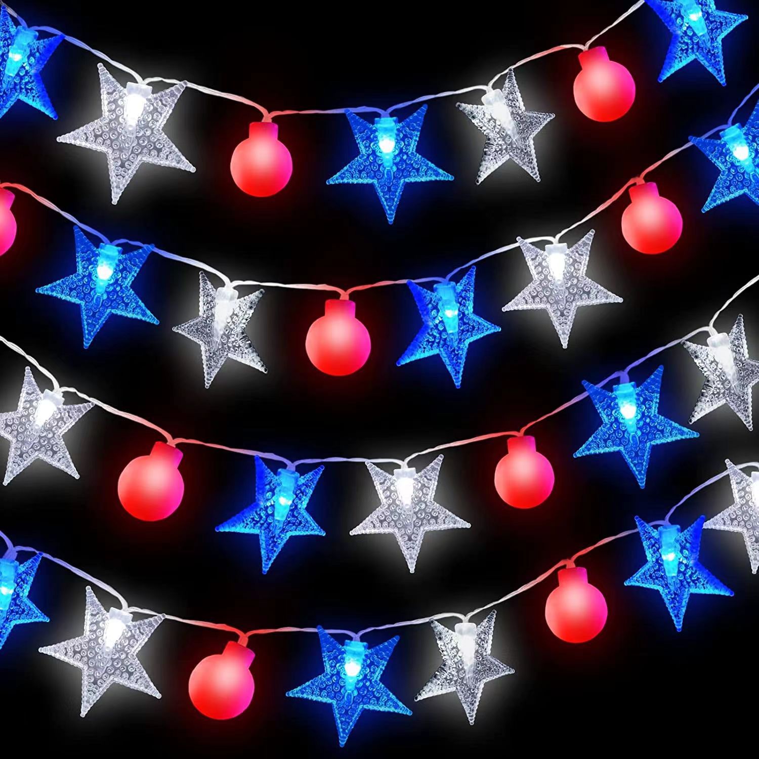 新型アメリカ独立日灯串赤白青五角星円球串灯国旗独立日装飾灯卸売り