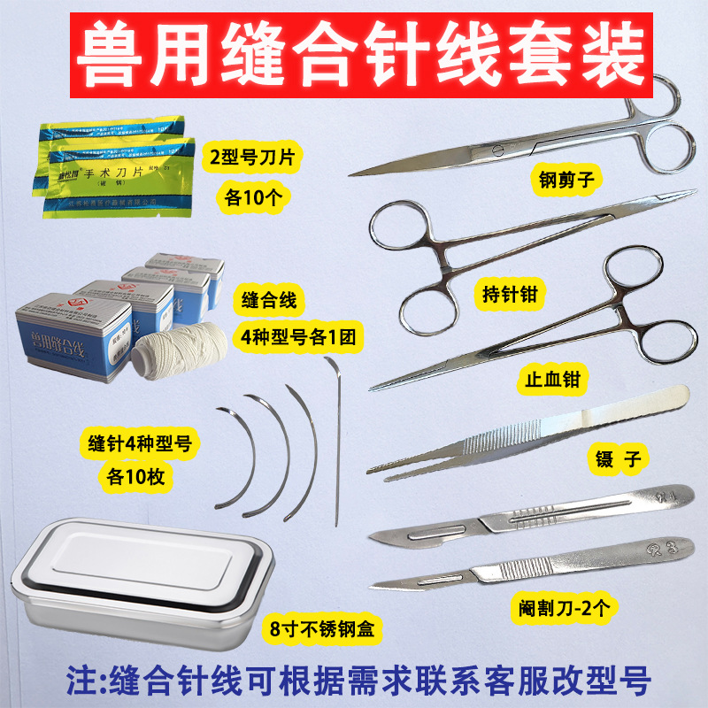 動物用縫合針糸ペット手術ハサミ牛羊犬豚用取り外しなし羊腸糸を吸収できる獣医去勢器