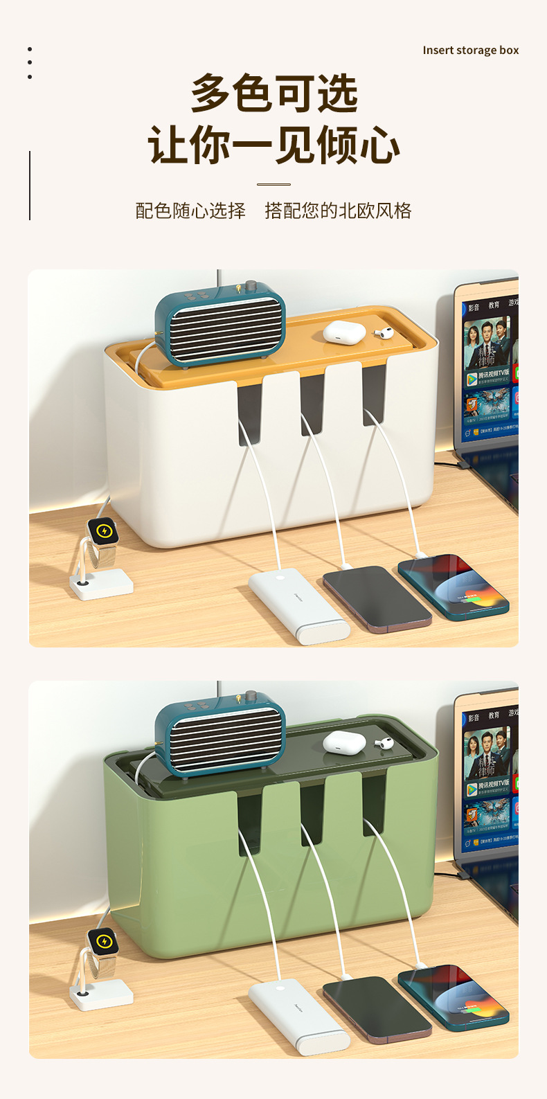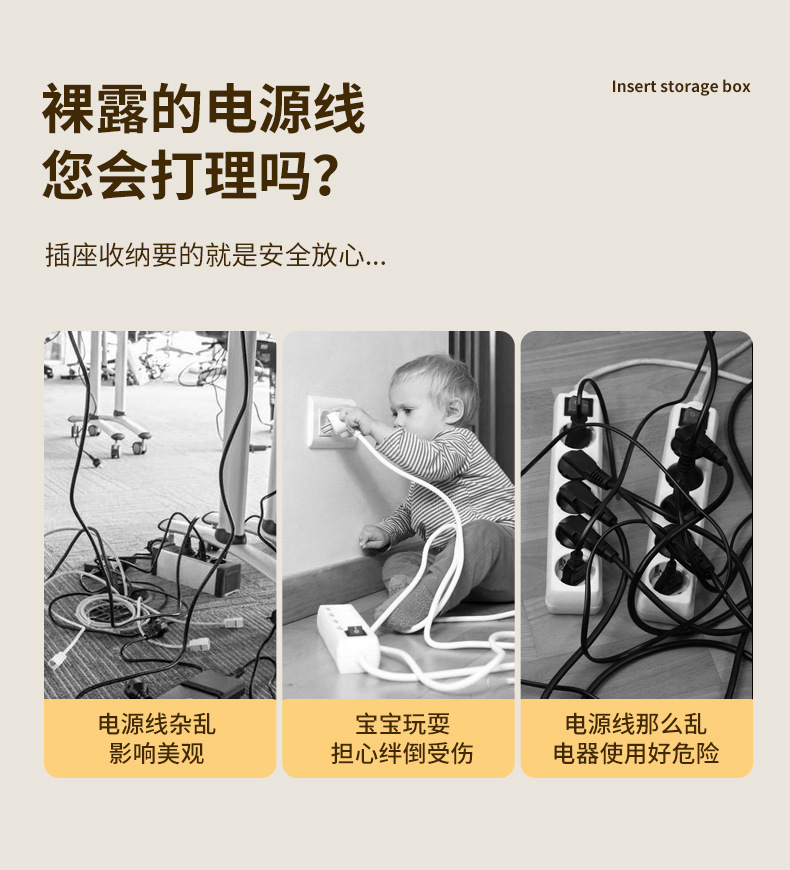 デスクトップ電源コード整理ボックス理線ソケット固定器充電器ケーブルケーブル収納ボックス