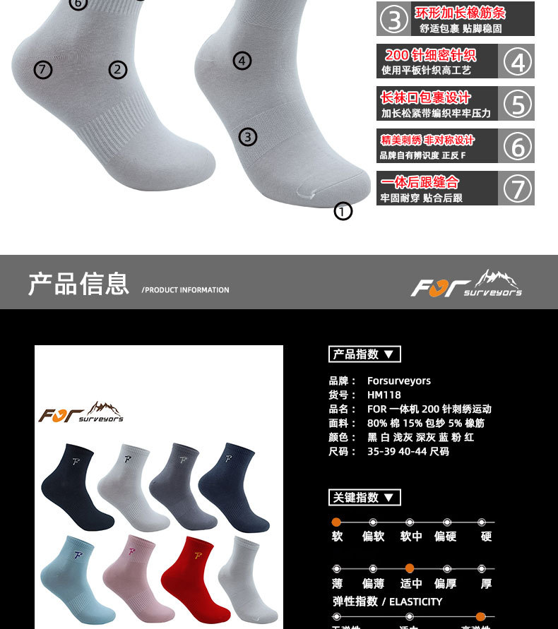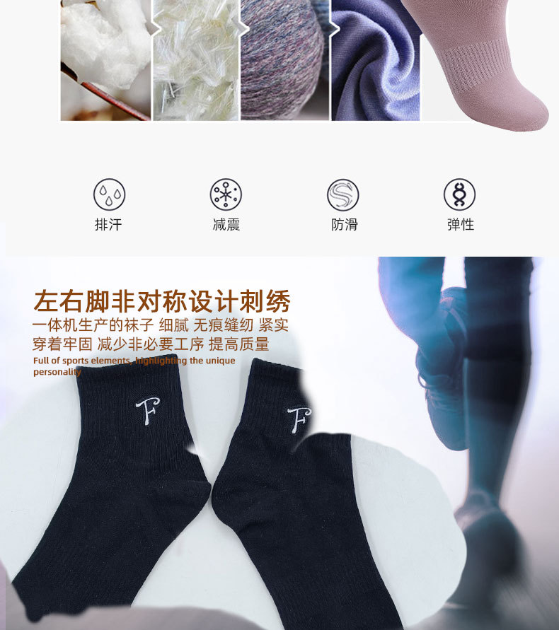 Forブランド一体型200針無痕裁縫スポーツソックス綿男ランニングフィットネス吸汗排湿女性ソックス